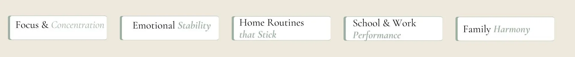 Think of it like a spiral. Each month we touch every area: focus, emotional regulation, family dynamics, home routines and performance. We start with the foundations, then add more skills and depth. By month five, you have grown and integrated the skills so they are becoming second nature, a level that simply isn't possible with information alone.